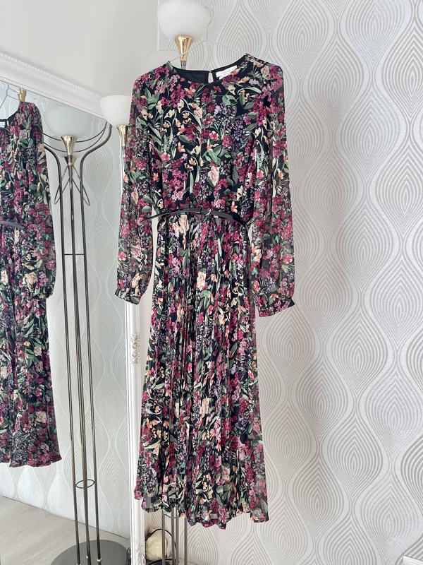 Квіткова сукня міді на довгий рукав ліхтариками. Сукня від бренду Reserved у розмірі S з спідницею плісировкою та ременем. Стан дуже хороший, з дефектів лише затяжка спереду, показано на останньому фото. Сукня з підкладкою, склад матеріалу 100% поліестер