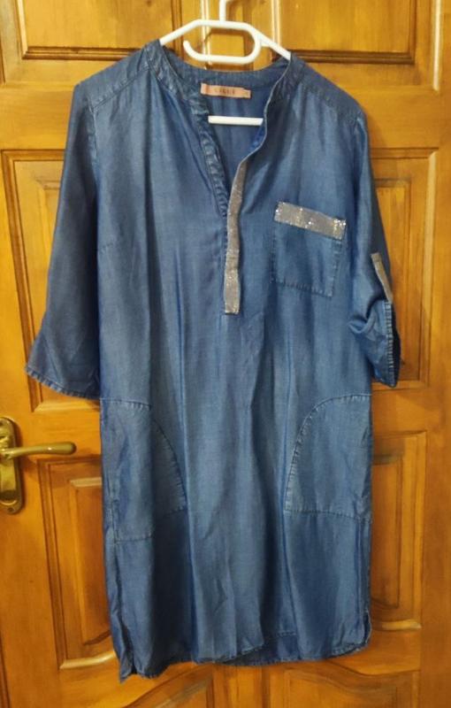 Повседневное платье, с декором по горловине и рукавам Ткань – рубашечный джинс, декор – металлические бусины Длина изделия - 94 см Рукав – 38 см, регулируется на кнопках (фото) Свободного кроя Полуобхват по груди (от проймы до проймы) – 50 см Два кармана, есть шлевки под поясок, пасок не сохранился Размер 38 - М Если выбираете 5 вещей с пометкой (Акц) – цена на каждую из них 150 грн. При покупке 10 вещей – цена на каждую – 100 грн.