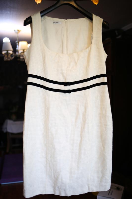 Отличное платье от Marks & Spencer. Наделась 3 раза. Отлично садится по фигуре. Нажаль стала замала. Размер указан 16 UK, это 44 EU или 52 Украинский. Но лучше ориентироваться по замерам. Довжина 90 см., ПОГ- 50 см. (трохи тягнеться), ПОТ - 44 см., ПОБ - 53 см. По всей длине платья подкладка. Имеет приятную на ощупь и очень красивую структурированную ткань. Цвет айвори.