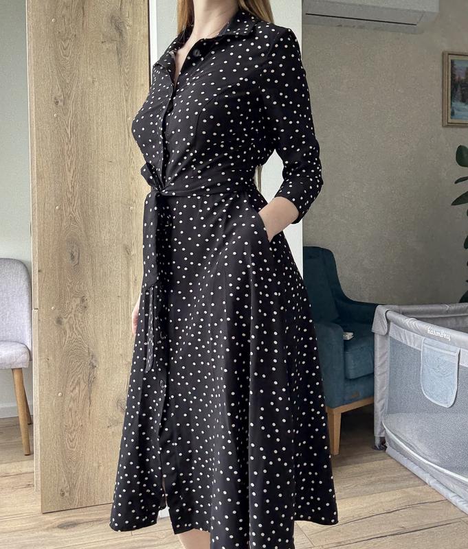Чорне жіноче плаття і горошок з поясом на гудзиках. Ідеально лягає по фігурі. Розмір С
