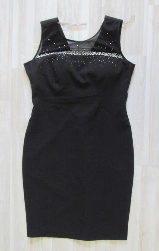 Черное трикотажное платье. Застежка молния. Написанный размер 44. Длина 98 см Полуобхват груди 50 см Ширина по талии 42 см Ширина стегон 52 см Ширина платья внизу 50 см Поролоновые вставки.