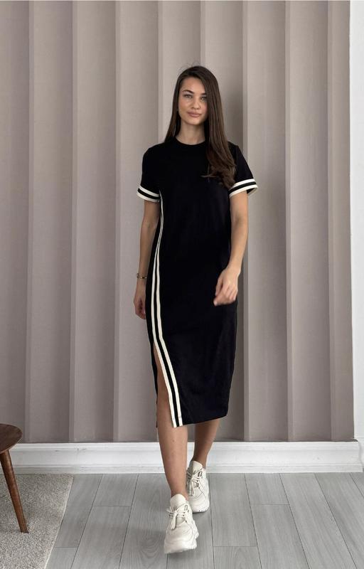 Трикотажна тканина. Состав: вискоза 95%, эласта 5% Рост модели 174 см Длина изделия 115 см Длина рукава 38 см Объем по линии груди 98 см Объем по линии талии 98 см Объем по линии бедер 104 см Все параметры указаны в размере S С каждым размером объема увеличиваются на 4 см Работаем по полной плате, есть обмен и возврат Наявность уточнюйте!