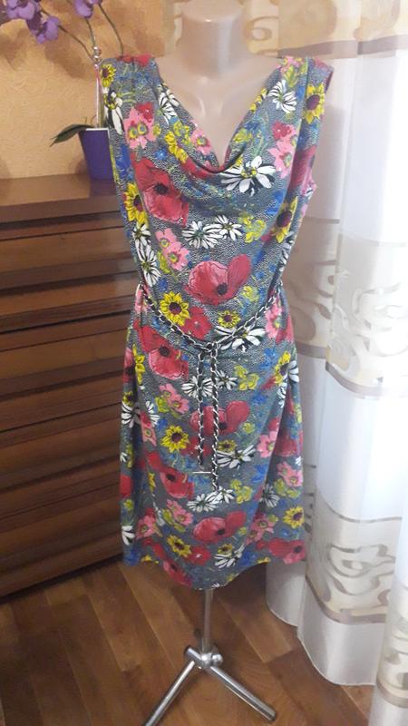Платье трикотажное (как футболка), но в меру тянется.Гарна освежающее повседневное и одновременно романтичное платье из натуральной ткани. Длина 100см НОГ-53см. Она прямая.