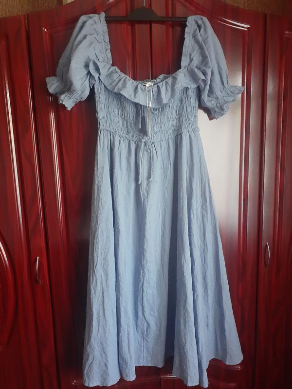 Платье новое, не подобранное по размеру, в размере L, дает приятный цвет,фото не передает его.Сукня имеет подклад.Можна носить как с закрытыми так и открытыми плечами.Подойдет как на 50 так и 52 размер.