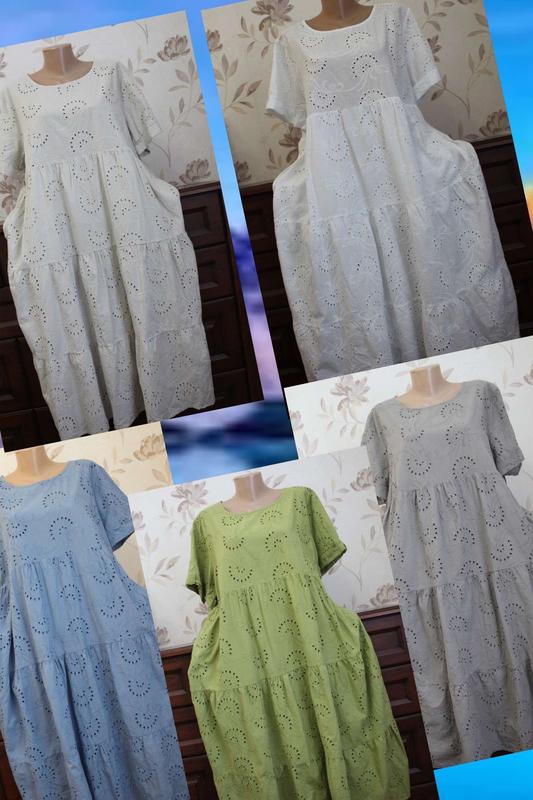 ЩЕ БІЛЬШЕ ГАРНИХ РЕЧЕЙ НА МОЇЙ СТОРІНЦІ! Підпишіться 🔥🔥🔥 Склад 100% котон Йде на підкладці ‼️Перед замовленням уточніть наявність кольору Кольори голубий, білий,світлий беж ОГ 122 см на груди до 120 см ( перевірено) ОС 162 см Довжина 122 см У продажу є інша модель з прошви, дивіться у мене в профілі