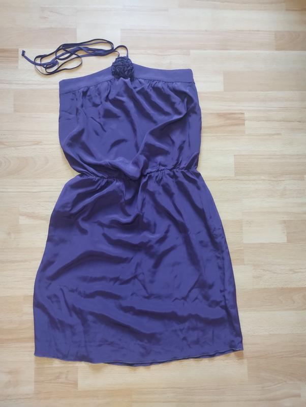 на спинке резинка, завязки на шее,молнии сбоку. в талии тоже резинка. Длина 88 см.Талия 34.Размер м.