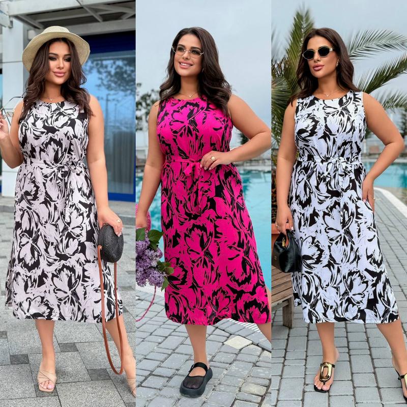 «Платье Тканина штапель Цвет белый, мокко, малиновый Размер 48-50, 52-54, 56-58 Легкое платье из штапеля, с непритачным поясом. По бокам снизу разрезы. Цена: 600 грн