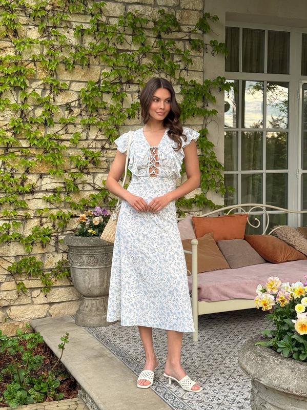 Женское платье сарафан летнее на завязках миди облегающая овьен