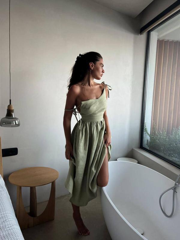 Платье из льна 💚 Мод: 851-7055 ▪️Тканина: льон ▪️Размер: 42-44, 46-48 ▪️Цвет: беж, голубой, шоколад, олива
