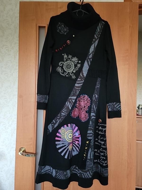 длина 100, полуобъем груди 44, талия 40, бедра 48, тянется Комбинированное интересное платье, дополнительно придам фото еще