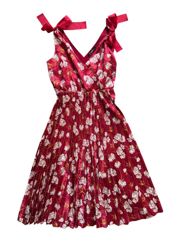 Червона розкльошена сукня плісе з квітковим принтом на завʼязках yes zee