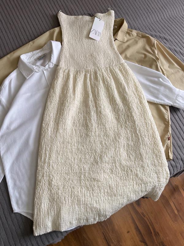 Сукня від ZARA, з останніх колекцій, розмір вказано ХS, по факту XS-S так як добре тягнеться. Колір білий/молочний. Дуже красива та стильна. Нова з біркою, торгу немає ! Заміри: Пог ( від одної подмишки до іншої ) 33 см + тягнеться до 50 см; Пот 27 см + тягнеться до 40+ см; Довжина по спині 103 см; Довжина від подмишки 105 см; Поб підкладки 55 см +/-; Поб 50 см.
