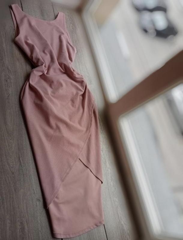 Платье миди пкдровое.На завязках сзади.С запахом спереди,красивый разрез.Ткань тянется.Размер s,m