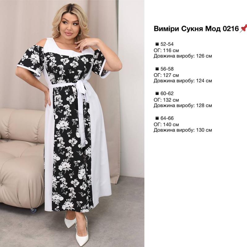 Стильное платье ▪Модель: 0216( Мал) ▪Размеры: 52-54, 56-58, 60-62, 64-66 ▪Тканина: софт ▪Цвета: белый, черный Платье элегантное и женственное. Она имеет длину миди и выполнена. Верх платья оформлен вставками, включая квадратный вырез декольте и вырезы на плечах (cold shoulder стиль). Рукава короткие, слегка расклешенные. Талия подчеркнута широким белым поясом, завязанным бантом. Также у платья есть вставки по бокам, что добавляет контраста и подчеркивает силуэт. В целом - это гармоничный и стильный наряд для летних или весенних мероприятий.