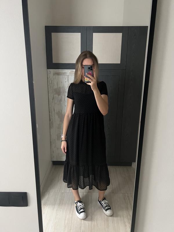 Сукня міді чорна в горошок розмір s
