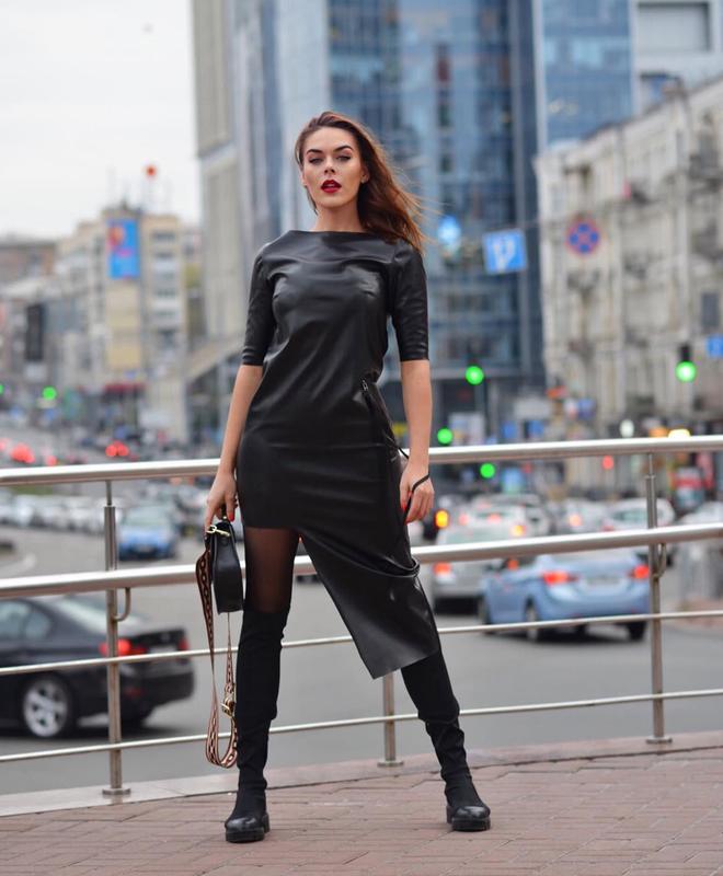 Чорне плаття из кожзама, розмір м -л, дуже стильне, було одягнено лише раз, заміри відправлю в лічку
