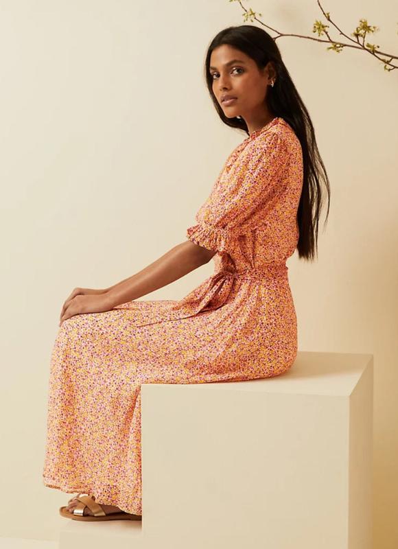 Дуже романтична летюча довга сукенка в пастельні ніжні дрібні польові квіточки 🥰🌸🌼🌸🌼 Колаб GHOST з M&S Цілком натуральна. 💯 віскоза Верхня тканина- шифон жоржет, дуже класний приємний тактильно матеріал, цей вид тканини зазвичай використовують лиш преміальні бренди Підкладка теж з віскози, але фактура типу твіл Одним словом, не лише красива чарівна , а ще й неймовірно якісна сукня 🤗 Довжина максі Рукпвчики фонарики, на резинці Верх- на запах В таліі резинка, є тоненький поясочок Розмір С Дрвжина 128 ПоГ 48 ПоТ 34 плюс Нова