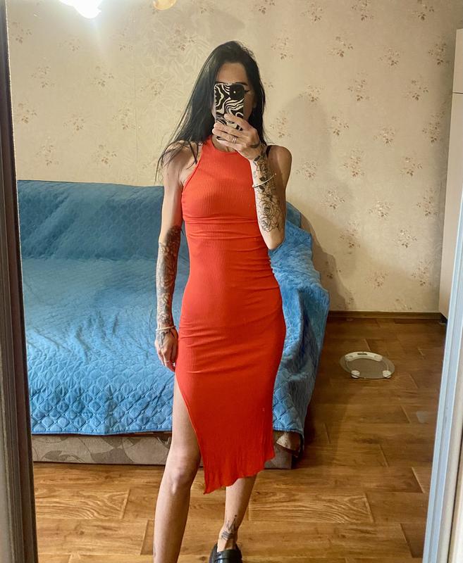 Новий стан Bershka S Дрібний рубчик Розріз збоку Подвійний шар тканини верху Під горло Тягеться Караловий кольор Розмір С Віскоза 95% еластан 5% Тягнеться 📌📌📌ширина під руками 30+ Довжина 121 см Рлзмір на рівні 80 см (Довжина розрізу 41 см )