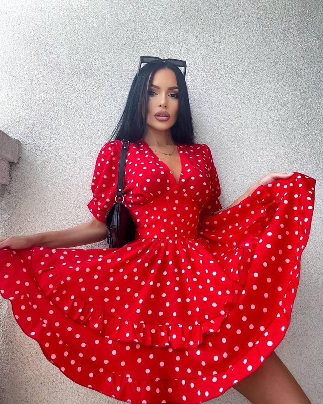 NEW ❤️ Фото реал❣️ Платье с пышной юбкой Мод: 557 Тканина: софт Размеры: 42-44, 46-48 Цвета: черный в белый горох, красный в белый горох Спинка платья на молнии Хорошее качество.