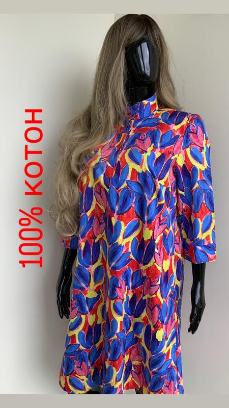 100 котон Яскрава сукня Дуже комфортна для літа Модель вільна на ґудзиках що принтована брендом Має бічні кишені Довжина 100 Груди до 55 Талія до 60 Бедра до 65 По низу до 70 Плечі 43 Рукав від плеча 46 Розмір 42 Склад 100 котон