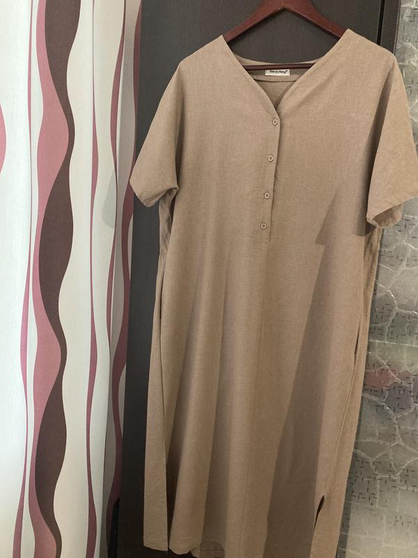 Сукня льон,нова,без бірки. Розмір М/Л Колір капучіно,як на першому і останньому фото. Є бокові кишені,по низу розпірки. Довжина 110