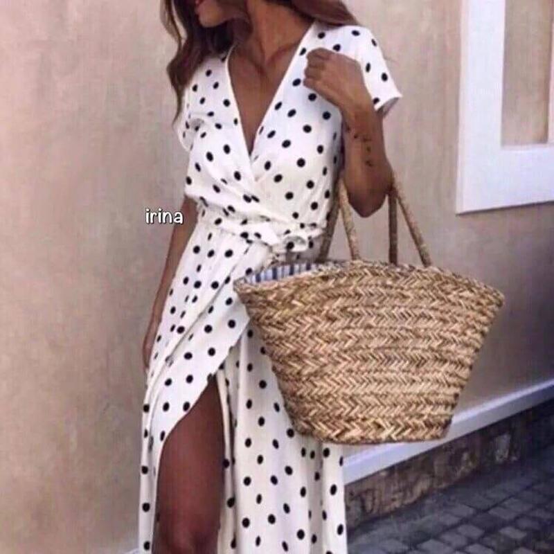 Платье в горох летний макси на запах