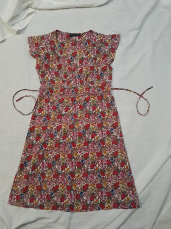 платье хс -с с Vвырезом рукав крылышко.с тоненьвыми завязками от боков на спинку.Замеры пог 43 пот 39 длина сукні 97