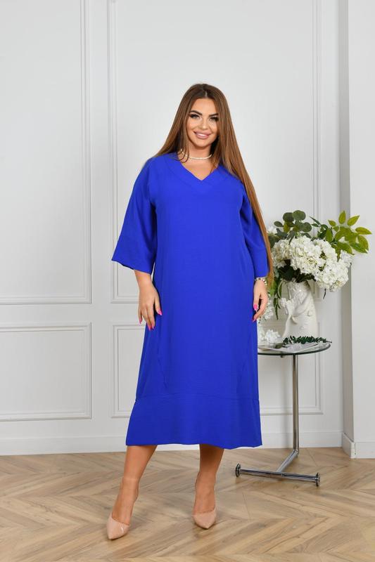 Сукня НОВИНКА💖💖💖 В НАЯВНОСТІ✅✅✅ Код 3734 Тканина: американский креп. Цвета: черный, горчица, ярко-синий, серый, джинс. Размеры: 52-54, 56-58, 60-62, 64-66. Длина платья: 121, 122, 123, 124 см. Длина рукава от горловины: 50, 51, 52, 53 см. Обхват рукава: 44, 46, 48, 50 см. Замеры готового изделия: 52-54 ОГ 122 ОТ 124 ОС 128 56-58 ОГ 130 ОТ 132 ОС 136 60-62 ОГ 138 ОТ 140 ОС 144 64-66 ОГ 146 ОТ 148 ОС 152 На модели показан этот размер 52-54❗️ Рост модели 170 см. Объемы модели: ОГ 106, ОТ 84, ОБ 107 см. Невероятное платье в стиле бохо из жатого крепа (не мнется, растяжимость минимальна). Силуэт платья свободный, прямой (на фигуре должно быть свободным, такая модель). Вырез горловины V-образный, что визуально делает шею стройнее. Рукав - реглан, длиной 3/4. Внизу, по бокам есть разрезы. Застежек, карманов нет. Платье отлично сочетается с каблуками, или со спортивной обувью.