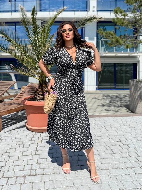 Модель 5647 Женское платье Ткань софт, не просвечивается, приятный на ощупь Размерный ряд ХЛ; 2ХЛ; 3ХЛ;4ХЛ,5ХЛ Цвета черный и белый Застегивается впереди на пуговицы Супер качество