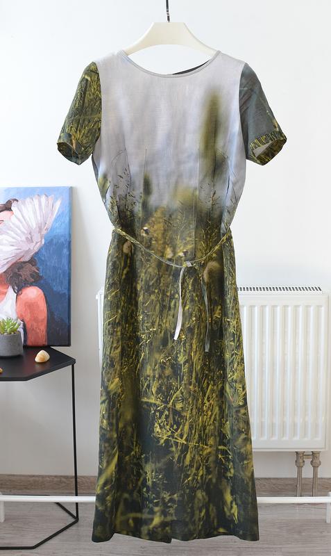 Льняное платье миди с поясом и пуговицами на спине в красивенный принт поля с травами Xenia Design размер 38/S-M состояние отличное состав на фото