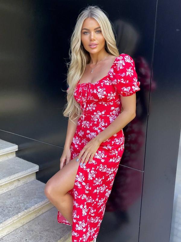 Універсальна сукня міді софт з розрізом і декольте яскраве плаття квіткове