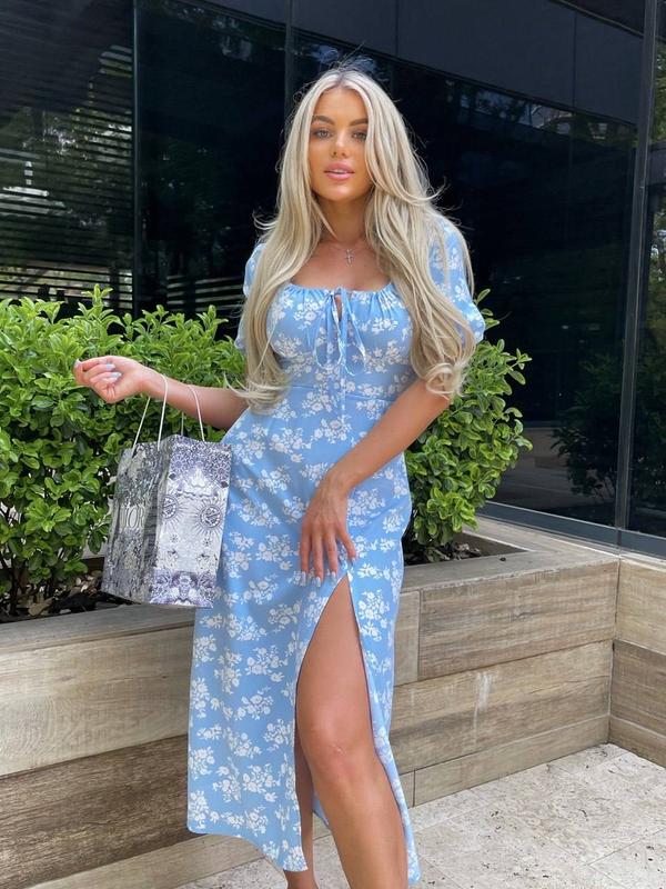 Універсальна сукня міді софт з розрізом і декольте яскраве плаття квіткове