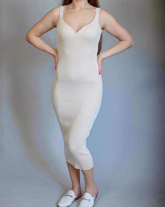 Новое трикотажное платье, хорошо тянется. Размер:универсальный Молочный цвет, Длина 114 см Хорошо носится, приятная к телу.