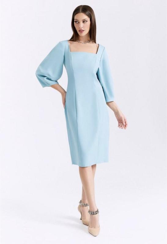 Сукня нова, з біркою, з квадратним вирізом міді з костюмної тканини мокко — це відмінний вибір для тих, хто цінує елегантність та стиль. Підкреслить індивідуальність кожної жінки, а міцна тканина та цікавий виріз зроблять її неповторним та незабутнім елементом гардероба. Модель виглядає неймовірно жіночно та романтично завдяки ефектному квадратному вирізу та укороченому пишному рукаву. Сукня застібається ззаду на практично непомітну блискавку, тому одночасно виглядає розкішно і не створює жодних труднощів у носінні. Модель довжини міді, тому доречно виглядатиме на більшості заходів. Сукня розміру L