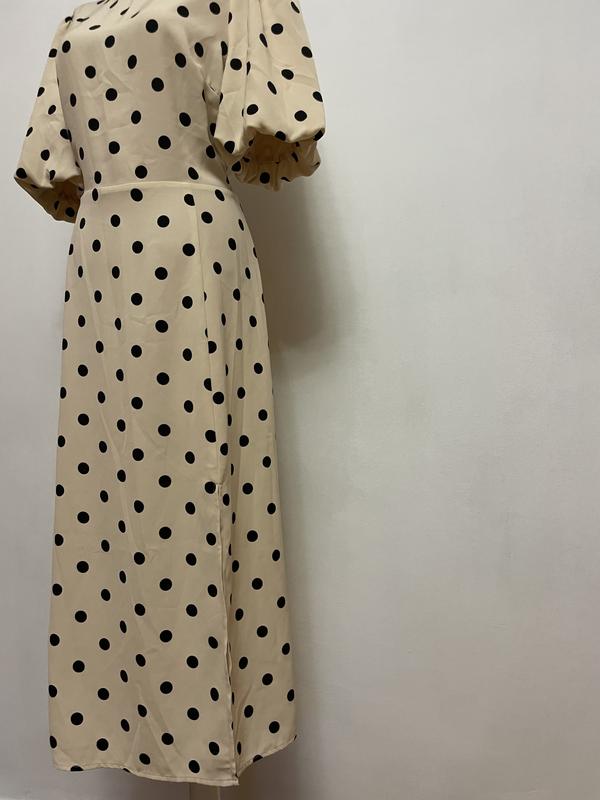 Стильное платье в горох. Красивая модель, сзади на молнии, рукав фонарик, разрез сбоку. Лёгкое изящное. Состояние идеальное. Полная оплата на карту Приватбанк. Через кнопку не отправляю‼️‼️