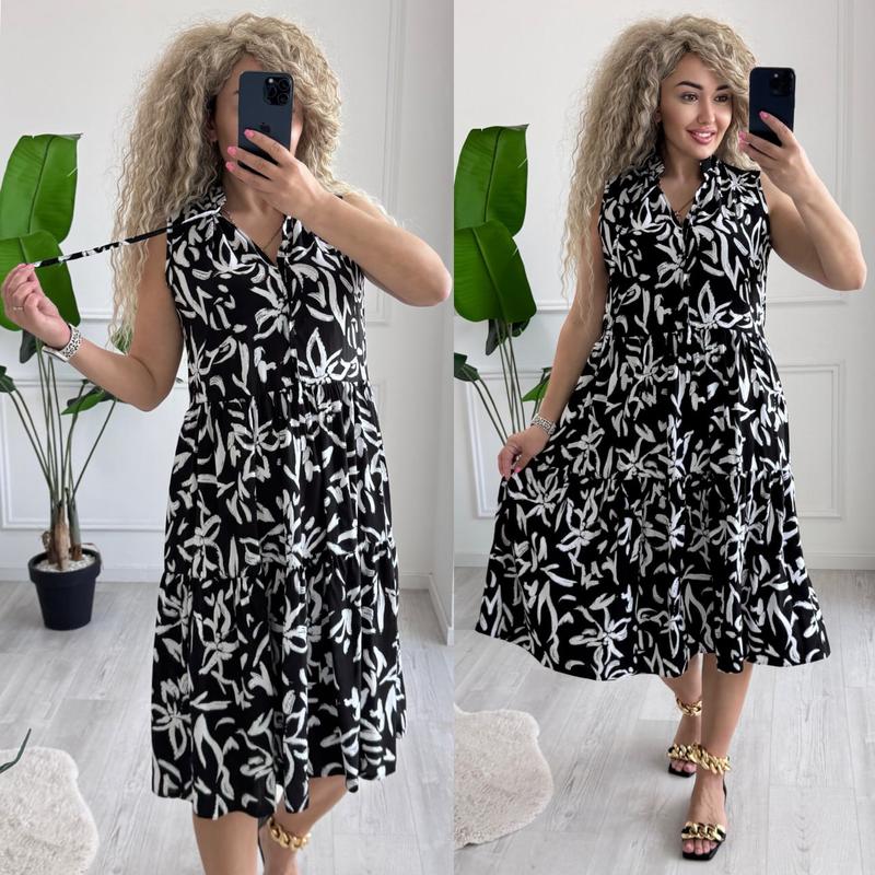 САРАФАН Арт. SV 623 Тканина: 100% бавовна(штапель) Цвет: черный, бирюза, серый Размеры: S, M, L, XL ремес) Описание: Свободное расклешенное платье-трапеция выполненное из натурального хлопка. Модель миди длины с воланами и завязками по горловине. ( замеры указаны на параметры)