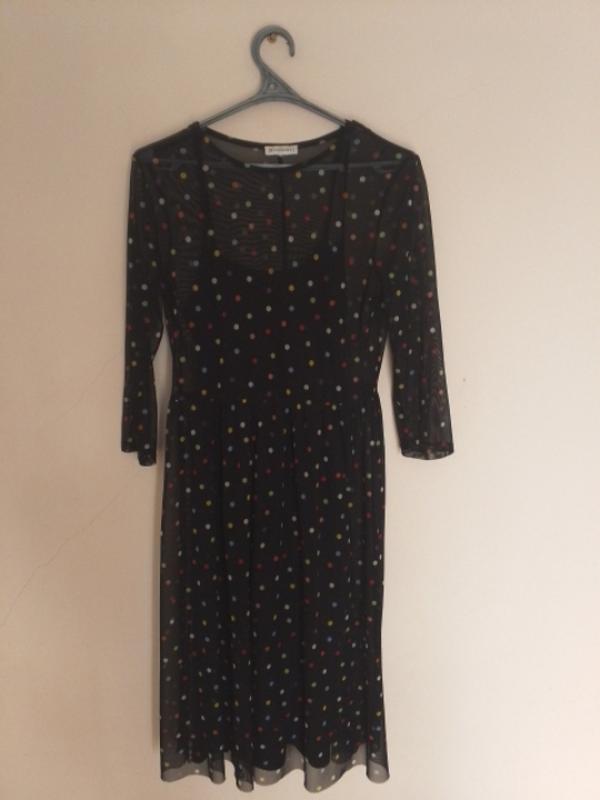 Фатиновое стильное платье в цветной горошек, с черным сарафаном