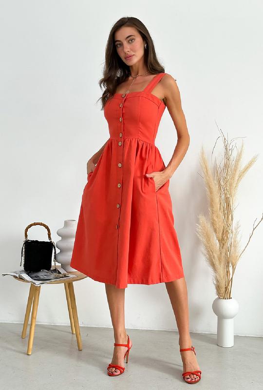 Льняное платье миди на пуговицах Размеры s m l Есть разные цвета
