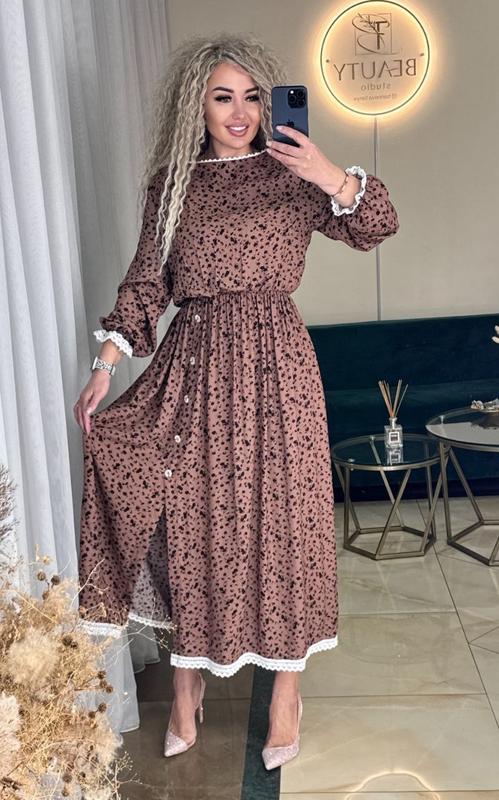 Жіноча сукня зі штапелю Мод 023 Тканина штапель принт Розміри 42-44, 46-48,50-52 Неймовірно ніжна, легка та зручна сукня, яка закохує з першого погляду! Виконана з м’якого штапелю з квітковим принтом, вона дарує відчуття комфорту та легкості в кожному русі. Ідеальний вибір для прогулянок, побачень чи романтичних вечорів. Деталі, які закохують: • Довжина міді — елегантно й зручно • Талія на резинці — гарно підкреслює фігуру • Делікатне біле мереживо на комірі, рукавах і подолі • Довгі рукави — ідеально для весни, літа або прохолодних вечорів • Легка дихаюча тканина — штапель, який приємно носити. 👜 Поєднується з босоніжками, кедами або балетками — створюй свій образ настрою!
