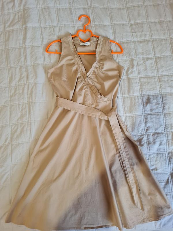 платье бежевого цвета, застежка молния скрытая сбоку, материал хлопок