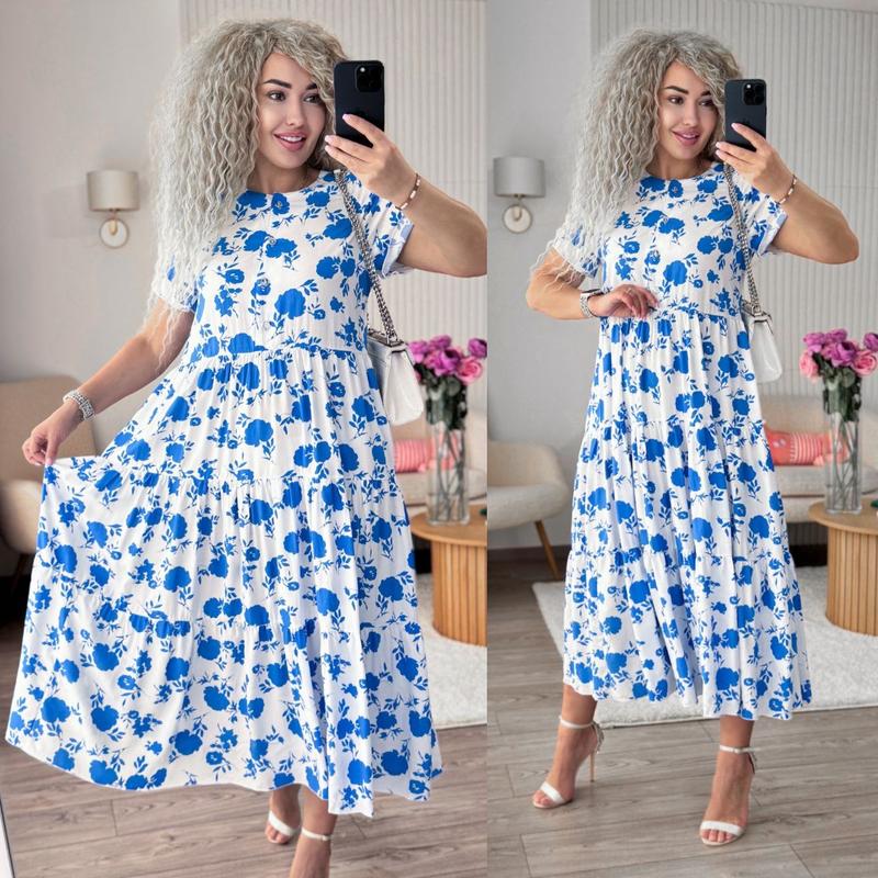 Плаття Мод 025 Тканина штапель принт Колір: Колір: білий з червоним , білий з зеленим, білий з синім Розміри 42-44, 46-48,50-52 Ця яскрава сукня з ніжним квітковим принтом – ідеальний варіант для сонячних днів! Легка, дихаюча тканина, вільний крій і зручна довжина міді створюють неймовірний комфорт і жіночний силует. Ідеально для прогулянок, відпустки, побачень чи літніх фотосесій.