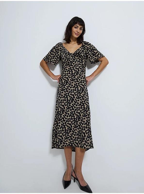 Для більш точного визначення, виміри, порівнюйте із вимірами подібної речі, а не зі своїми обсягами. Леопардова міді сукня. Тканина тонка, не просвічується, не тягнеться. Крій ліф по фігурі, має зав'язку. Талія відрізна, під грудьми. Спідниця трапеція. Стан: ідеальний. Дефекти: ні. Розмір на бирці: 16 (Виміри виробу вимірюються у напівобхваті, а не від шва до шва!) Виміри виробу: Плечі 29 см., Рукав 33 см., Висота пройми 29 см., Ширина рукава 27 см., Напівобхват грудей 53 см., Напівобхват талії 48 см., Напівобхват стегон 59 см., Напівобхват низ 91 см., довжина по спині 119 см, довжина від плеча 125 см. До талії 32 см. Склад тканини: 100% поліестер. Країна виробник: Румунія. Бренд: George. Оплата і доставка: Оплата на картку монобанк. Бронювання на оплату тільки 24г. При змінах наміру купувати обов'язково повідомляйте! Доставка: На час введення воєнного стану уточнюйте чи можлива доставка до Вашого пункту. Актуальні новини можна уточнити на сайті перевізника та за номером телефону контакт-центрів. Не забудьте ПІДПИСАТИСЯ щоб бути в курси всіх новинок та розпродажів!