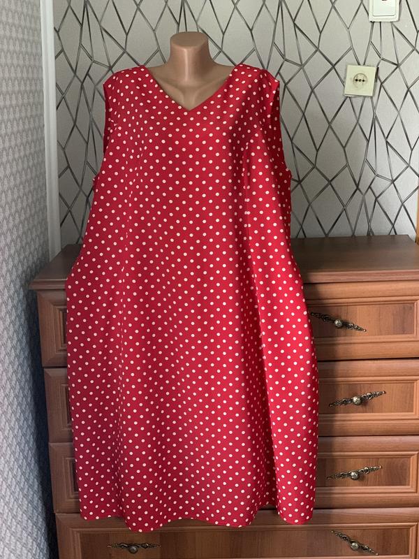 Стильна сукня плаття в ретро стилі червоного кольору в білий горошок батал великого розмір...