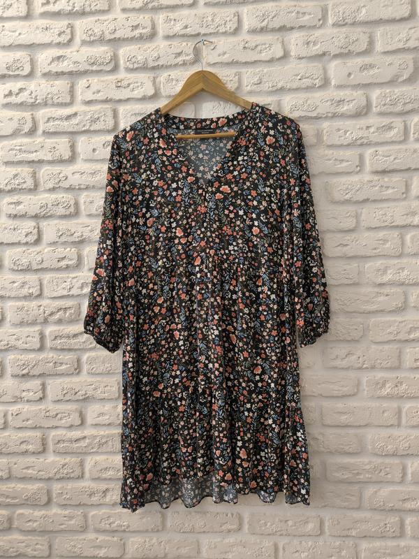 Платье миди в цветочный принт. Замеры: Длина 92 см Полуобъем груди 51 см Длина рукава 46 см Плечи 45 см Свободный крой. V подобный вырез