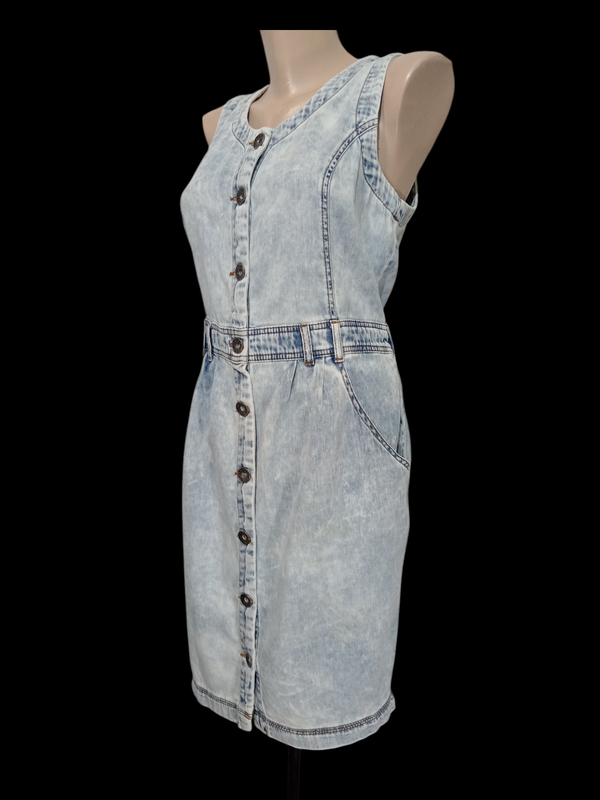 Джинсовое платье застёгивается на пуговицы, талия отрезная. В поясе, сзади - резинка. Впереди по бокам карманы. Размер указан UK 12, EUR 38. 🌼 ПОГ 48 🌼 ПОТ 43/46 🌼 ПОБ 53 🌼 ширина по низу 45 🌼 длина 94 Состояние идеальное.