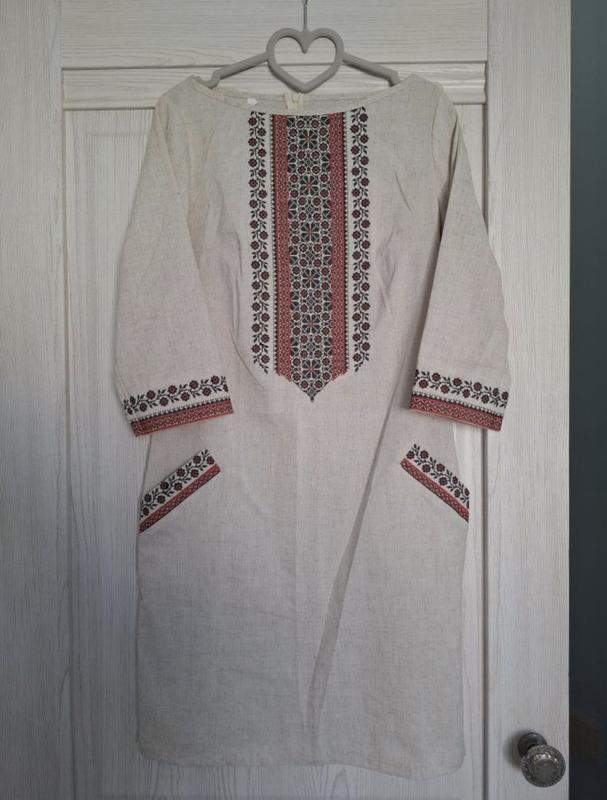 Продам сукню українського стилю. Материал лен, новая. Машинная вышивка, приталенного кроя. С кармашками, рукав три четверти.