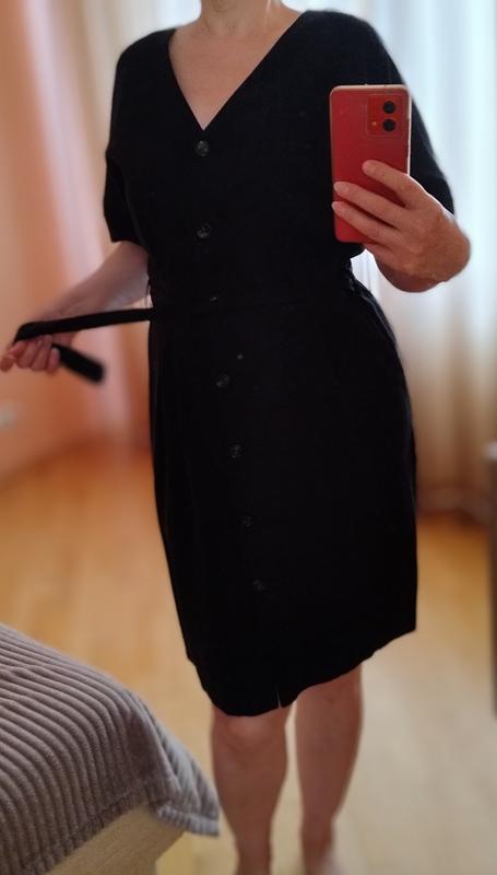 Продается новое летнее платье, цвет черный, размер 50. Бренд Ostin. Состав ткани 95% вискоза, 5,% полиэстер. Замеры: ПОГ- 50 см, ПОТ 42 см, ПОБ- 56 см. Длина 100 см. Фасон спущена пройма, платье на пуговицах, под пояс, на талии вытачки.