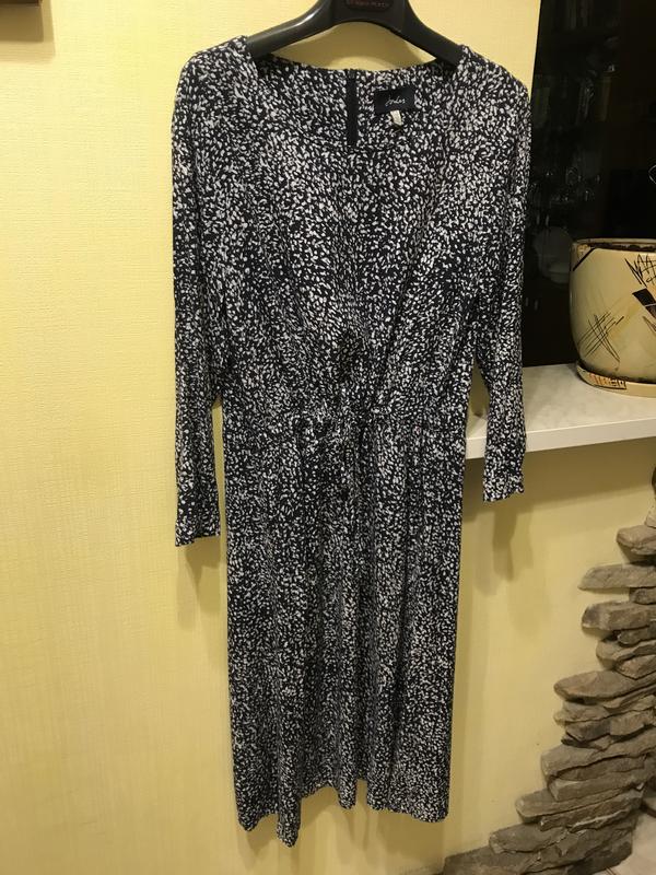 Сукня на літо, весну. По таліі куліска, є бокові кишені. Фасон прямий, позаду застібка блискавка. Тканина дуже легка. Напівохват грудей 46 см Талія 46 см Довжина 100 см Рукав 48 см
