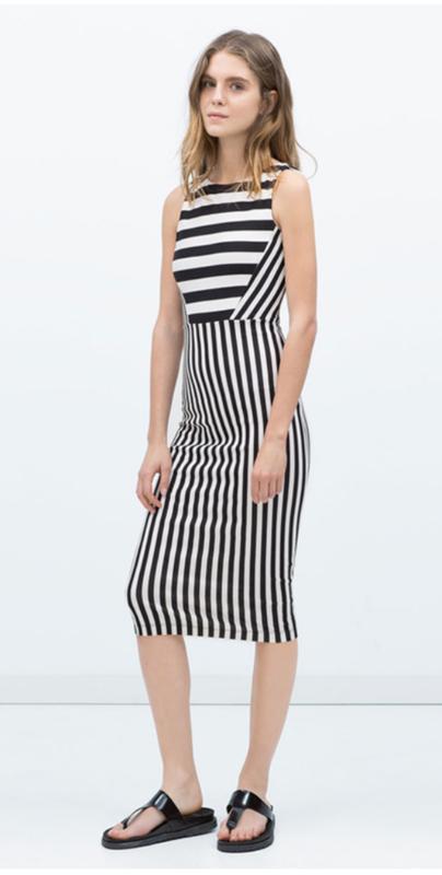 Сукня Zara M/S трикотажна в смужку. Півобʼєм в грудях 39 см, півобʼєм в талії 34 см, півобʼєм в стегнах 41 см, довжина 108 см.