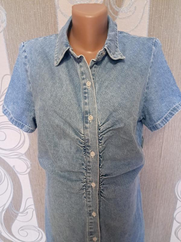 Джинсова сукня, нова. На размер 46-48 Длина 94 Полуобхват грудь 48 Напиток талии 43 Напiвобхват стегон 49 Плечи 37 Пройма рукава 26